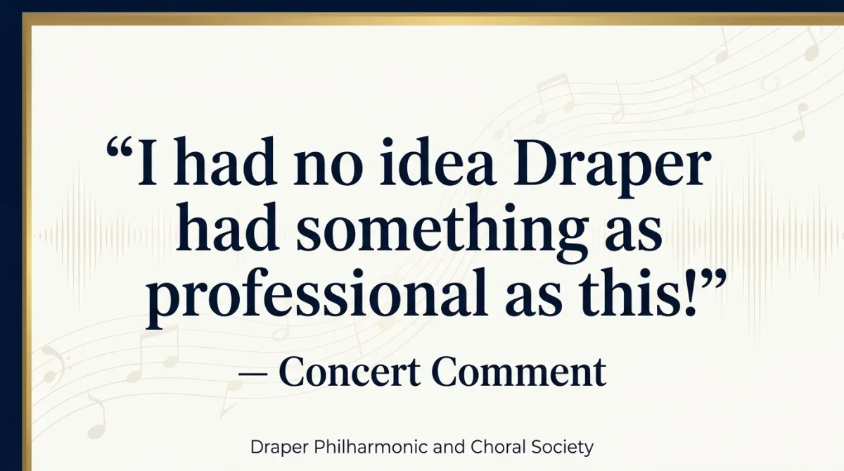 The Draper Philharmonic and Choral Society is a volunteer-driven orchestra and choir dedicated to presenting inspiring music for Draper and the surrounding communities. Our players and singers come from a range of backgrounds—educators, professionals, students, and retirees—united by a shared love of great music.